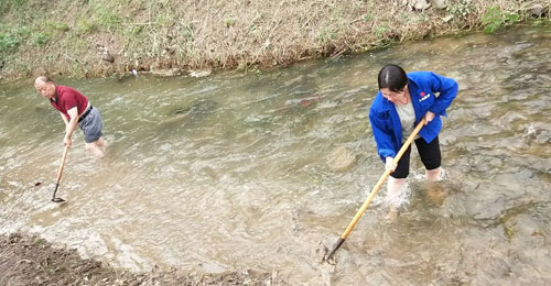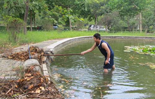 对水池内杂物进行清理