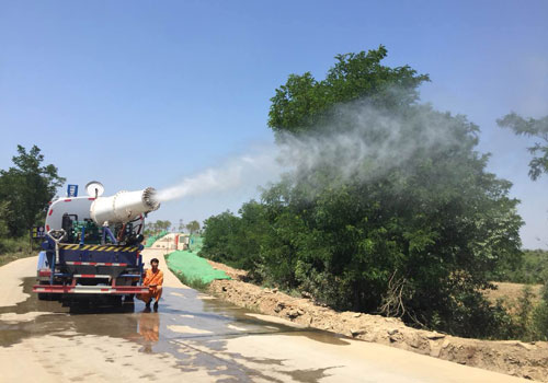 雾炮车对正在对矿山进行喷洒降尘 |