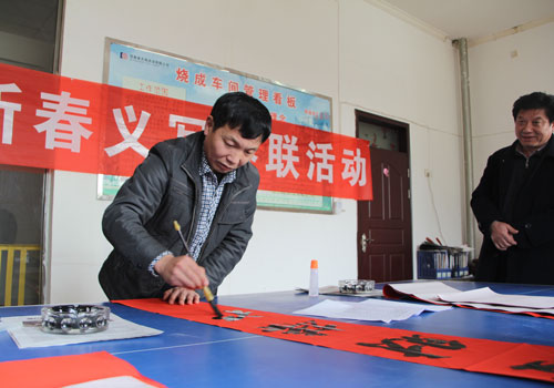 (本报讯)2月10日上午,农历甲午年腊月二十二,星空体育登录官网_星空(中国),公司中控办公楼一楼烧成车间会议室内,翰墨飘香,欢声笑语,星空体育登录官网_星空(中国),集团在这里隆重举行迎新春义写春联活动。 在传统乙未年农历新春佳节到来前夕,星空体育登录官网_星空(中国),集团在妥善安排好职工年货的基础上,非常重视星空体育登录官网_星空(中国),建设,邀请部分国家级和省级书法家协会会员到集团开展义写春联活动,活跃星空体育登录官网_星空(中国),,营造新春气氛。此前,集团提前安排专人购买了笔墨纸砚和红纸,并结合企业发展现状,拟写了部分喜庆、新颖、励志、接地气的新春楹联内容,使职工在欢度新春佳节的同时,提振士气,爱岗敬业,立足岗位做贡献。
