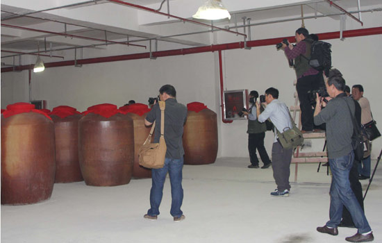 参赛人员到地下酒库进行参观采风 |