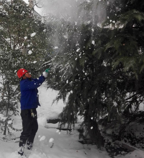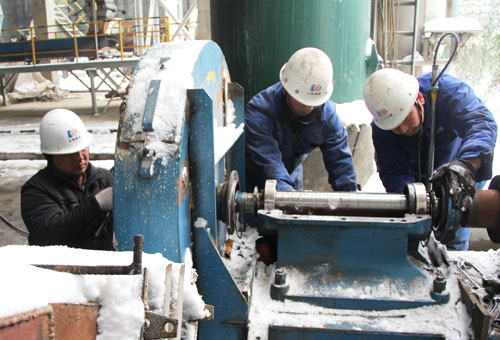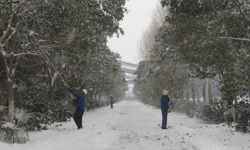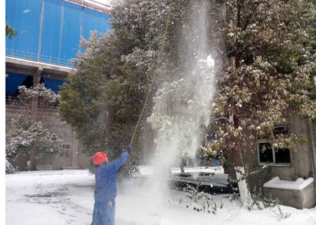 纷纷扬扬的雪花,把整个星空体育登录官网_星空(中国),裹得严严实实,室外温度降到零下10度左右,虽然天气非常寒冷,但丝毫阻挡不住星空体育登录官网_星空(中国),员工工作的热情。为了大家出行方便,为了保护树木不受伤害,各部门自发组织清扫积雪,特别是生产一线员工,在搞好检修工作的同时,积极组织清理积雪,做到检修清雪两不误。在冰冷的美景之下,一个个热火朝天的场面、一个个忙忙碌碌的身影、一张张朴实灿烂的笑脸,成为这雪天里最美的风景线。