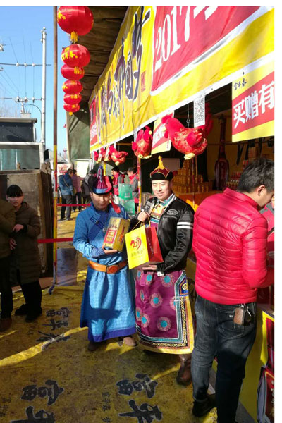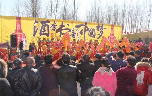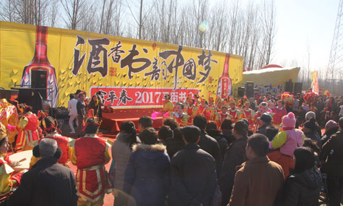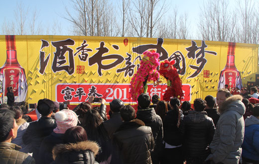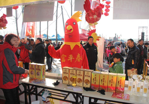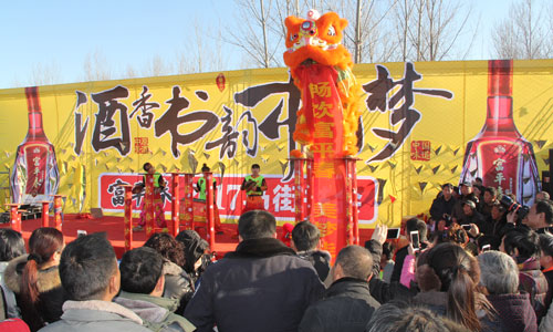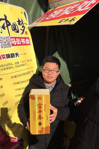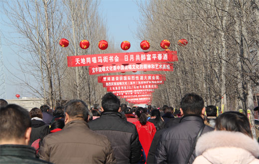 富平春马街书会感恩大派送侧记(二) 正月十三上午,笔者还未到马街,就被一阵喧天的锣鼓声所吸引,在马街书会入口富平春二号展台处,一场盛大的文艺汇演正在精彩上演,这是富平春公司为回报社会,倾情百姓的感恩大派送活动现场。一边是火爆的扫码中奖活动,一边是火辣的激情演出,吸引着八方来客蜂拥而至,把整个现场围得水泄不通。 龙腾狮跃歌盛世,锣鼓声声震乾坤。演出现场,阵容强大,场面壮观的《龙腾九宵》《盘鼓闹春》等节目,激越澎湃,催人奋进;惊心动魄,扣人心弦的高空舞狮、狮口喷字,不时地把汇演推向高潮,串烧、戏曲、民歌、舞蹈轮番上阵,场面热烈,荡人心魄,此起彼伏的掌声、歌声、笑声、欢呼声汇成了一片欢乐的海洋。期间,富平春还精心准备了扑克牌、吉祥物等精美礼品,与现场群众进行现场互动,很受大家欢迎和喜爱。 随着人群,笔者走进书会现场,大型彩虹门“富平春2017马街书会”欢迎着八方来客,“天地同唱马街书会,日月共醉富平春酒”等大红条幅格外引人注目,路两旁及书会现场挂满了大红的灯笼,这是富平春义务为书会做的精心布置,为书会增添了喜庆热烈的气氛。 在中华曲艺展览馆东侧富平春主会场,人潮涌动,热火朝天,品酒的、扫码的、中奖的,场面火爆嗨翻天。现场工作人员非常忙碌,为来客提供周到细致的服务,两个吉祥物金鸡也显得格外欢快,不时地向过路群众问好,引来大家纷纷与其合影留念。在赶会游玩的同时,随便拿起手机扫一扫,就会中得实实在在的大奖,那是怎样的一种心情,激动、高兴、感恩……怎一个“乐”字了得。“赶快发送朋友圈,让大家都来参与”一位中得一等奖的小伙立马把他中奖的喜讯发到了朋友圈。“我中大奖了”“富平春为大家带来了实惠,带来了情趣!”“富平春酒喝着真美!”在现场,不时听到来客一边品咂,一边赞口不绝。 天色渐晚,艺人说客慢慢散去,但富平春带给书会的欢快、热烈、欢腾的气息经久不息!