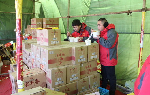 为了使本次活动顺利完成,集团领导高度重视,统筹安排,周密部署,抽出20多名精兵强将助力。富平春公司更是全力以赴,积极备战,专门成立以总经理为组长的酒香书韵领导小组,从各个部门抽调120人组成工作组,多次召开专题会议,制定方案,精心策划,将整个活动任务层层分解,明确到人。在整个活动中,大家各负其责,各司其职,充分发扬吃苦耐劳,团结协作的团队精神,克服天气寒冷,雨雪降温,交通不便等各种不利因素,不讲条件,不讲代价,加班加点,在所不惜,渴了喝口矿泉水,饿了就蹲在地上吃口盒饭,那种敬业奉献的精神真令人感动。由于长时间的操劳,有的手冻得裂了,有的同志噪子喊哑了,有的伤风感冒了,但没有一个人喊苦叫累。