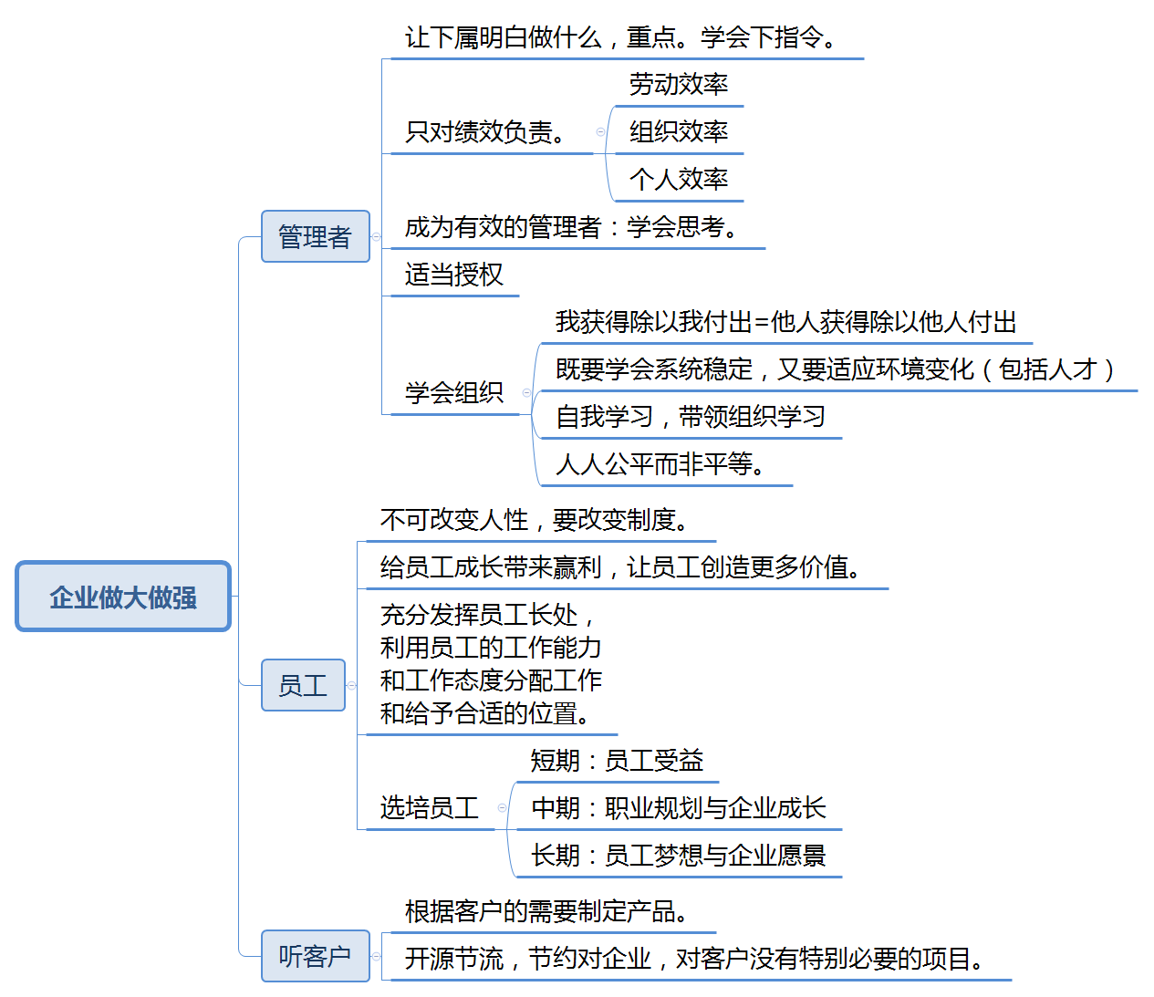 为期5天的中旭培训学习结束了,非常感谢公司对我的信任,为我提供了这次宝贵的学习机会。管理者的五项修炼,使我收获很大,自己对管理这件事和管理者资格角色都有了更深刻的认识,这些知识对于今后的工作有很大的帮助和提升。 管理者的五项修炼,从基层,中层到高层管理者,全面的讲解了什么是管理者,如何成为一名合格的优秀的管理者。不仅使我对当下的工作有了新的认识,也对未来的的工作有了更明确的方向。同时,对集团的很多决策有了深入的理解,对星空体育登录官网_星空(中国),也有了新的认知,加深了对企业的认同感。 以下是这5天培训的一些心得体会: 一、管理者与管理的目的 管理者的作用是解决问题而不是成为问题,管理是为了解决效率问题。 管理者不是每天坐在办公室里思考问题,而是要发现问题并能够解决问题。没有调查,就没有发言权。所以要经常与上下级沟通,发现问题才能弄清楚问题的根本原因。与上级沟通能够更好的理解领导布置的任务,与下级沟通能够了解每个人的长短处,分工才能让正确的人去做正确的事。 二、通过改变制度从而改变人的行为 制度就像河道,人就像河道里的水,水本身没有好坏,人也一样。 制定一个适合自己公司门的制度不仅可以约束员工,同时还能激励员工。每个企业和部门都有不同的实际情况,制定制度不能生搬硬套,没有最好的制度,只有适合的制度。 三、管理始终为经营服务 一般人们总是说经营管理,在培训之前我也一直以为是一件事,通过培训学习才知道,两者有着本质的区别。 经营解决收入问题,管理是为了控制支出;经营是为了增大被减数,管理是为了减小减数;管理做的再好也不会做到不支出,但是经营不好却可能没有收入。经营的第一要素是客户价值,公司对外经营有客户,部门对内经营一样有客户。一条生产线、上下游部门之间、平行部门之间都是彼此的客户,经营好各部门的客户才能有效合作、减少浪费和失误,才能真正做到减小减数,提高公司利润。 四、管理事和领导人 俗话说,铁打的营盘流水的兵,其实就是说的流程管理。 一个公司,一个部门,一个岗位,人员都在不停的流动。通过制定一个固定有效的流程,可以很好的避免因为人员流动造成的重复培训浪费、提高工作效率。比如以我现在的岗位中控操作员为例,按照操作规程操作,新进的学徒也可以很快掌握操作的要点重点,学习起来就事半功倍。 五、管理追求对等而非平等 因为分工不同,每个人承担的责任是不一样的,所以每个人的回报也是不一样的。在看到自己和别人回报的差别时应当首先想一下我们担当到的责任是不是一样,付出是不是一样。责任,权力,利益相互平衡,管理才能平衡,任意一点失衡,人们就会通过牺牲另外两点来弥补。 另外,通过学习,我对企业如何做的更好有了初步的认识,如下图: