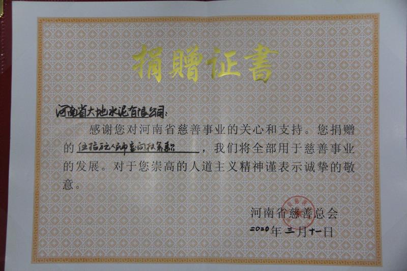 首页 >> 走进星空体育登录官网_星空(中国), >>资质荣誉 >> 河南省星空体育登录官网_星空(中国),水泥有限公司向河南省慈善总会捐款50万元